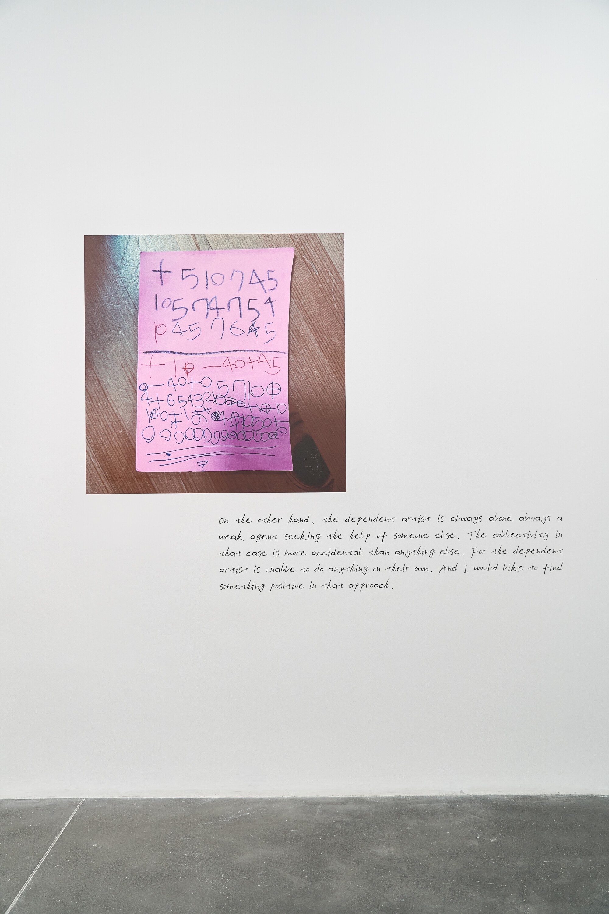 自2011年起,田中功起逐渐将创作重心转向人与人之间的关系,通过组织多人参与的“工作坊”探索在临时聚集的群体中,个体经验如何在其中流动、碰撞与消融。他并不以传统意义上的“创作者”自居,而是充当一种“时刻”的促成者——设定情境、退居观察,让参与者在无法完全控制且难以预测的过程里,共同构建一个临时的微观社会。本次展览呈现的三件代表作品揭示了这一创作逻辑的多重面向:《五位钢琴家同时弹奏一架钢琴(初次尝试)》(重剪辑版)(2012/2025)将原本的独奏行为转化为必须协商、适应与调解的合作现场;《五位诗人同时写一首诗(初次尝试)》(重剪辑版)(2013/2025)在共同创作的语言张力中捕捉个人风格与集体成果的矛盾交织;《五位陶艺师同时制作一件陶器(静默尝试)》(重剪辑版)(2013/2025)呈现了个体意识在群体创作的共同焦点中逐渐消融的状态。多人参与下的复杂关系与心理状态层层显现,一种消逝与重生的可能由此出现:当所有人专注于同一个目标,个体的存在似乎在某个时刻消失了,留下的只有纯粹的群体行动。