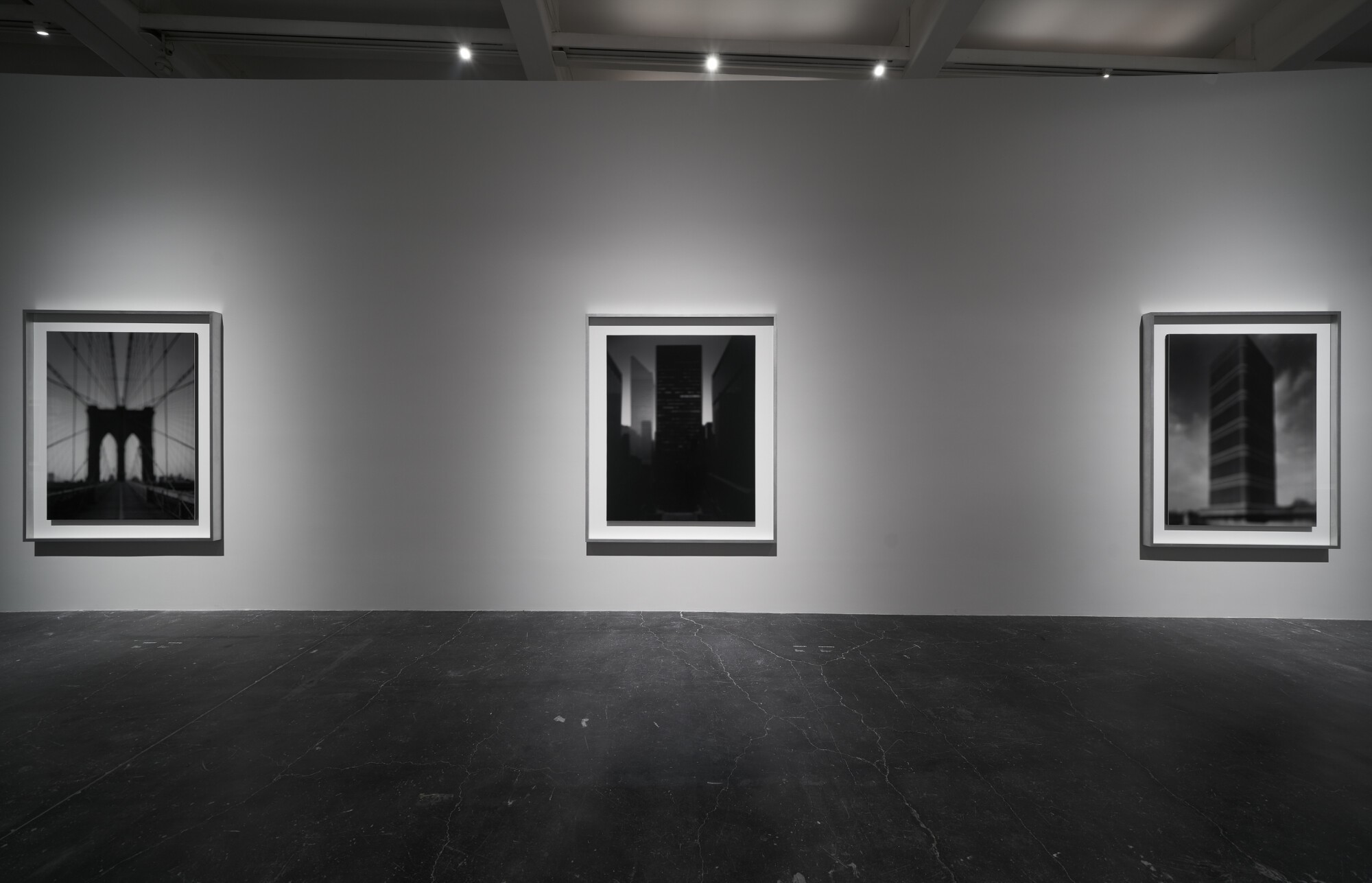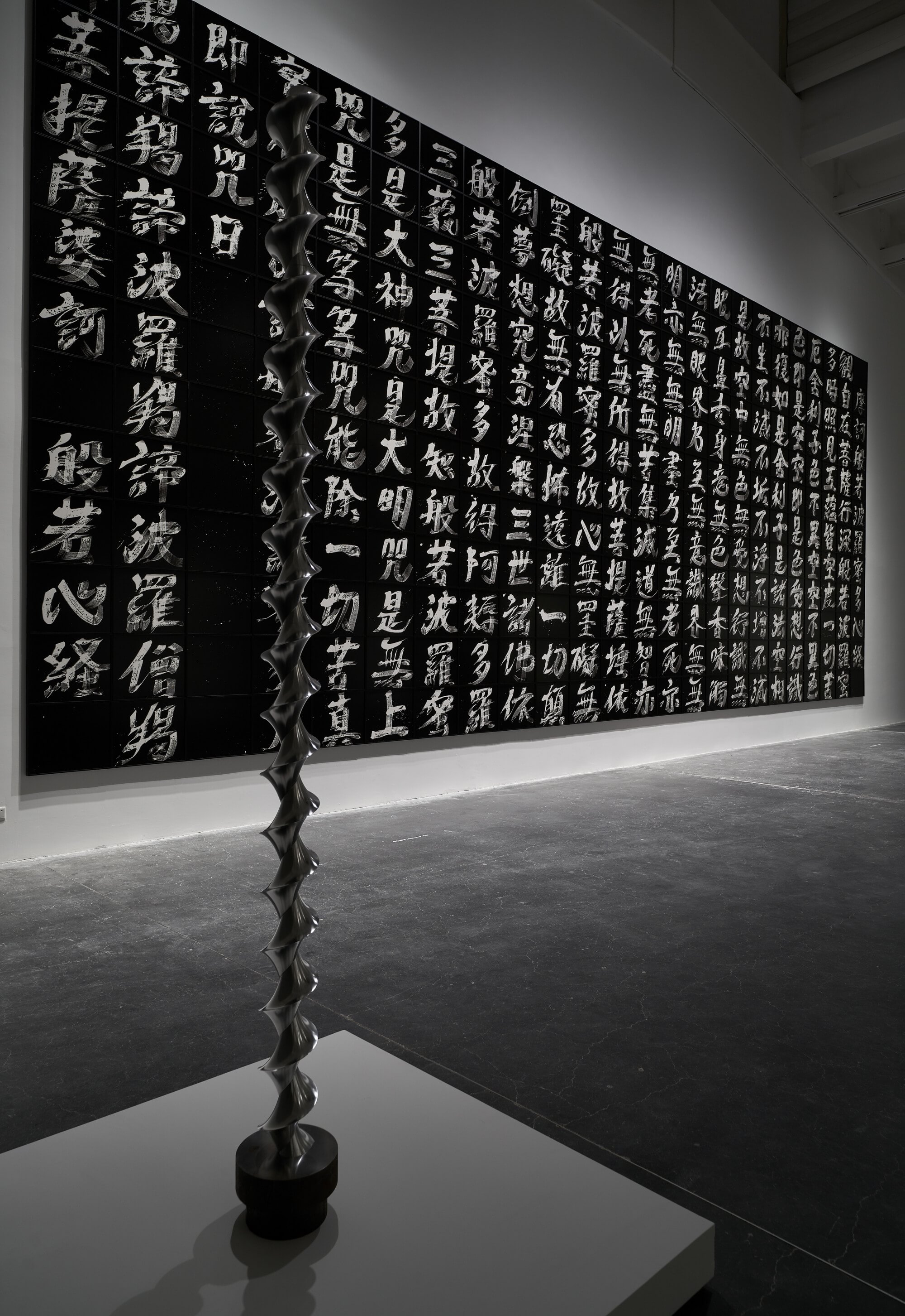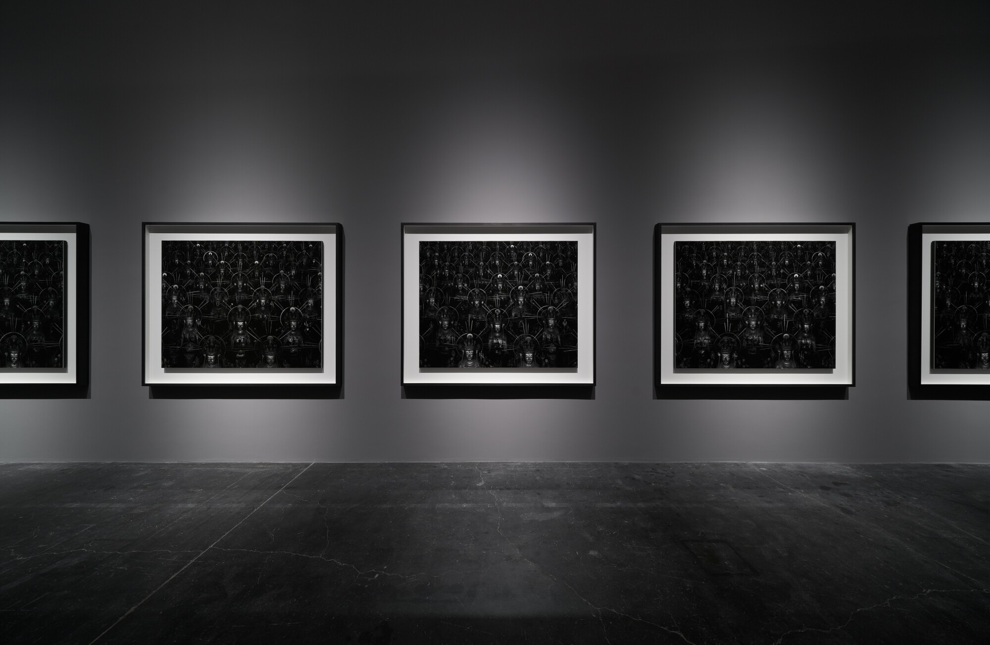 In the summer of 2023, Hiroshi Sugimoto returned to New York after a four-year absence due to the COVID-19 pandemic. Arriving back in his studio, he found a large quantity of expired gelatin silver photographic paper. Understanding the beauty of decay in antiques, Sugimoto began to use this expired photo paper for his new creations. He decided to bring calligraphy into the darkroom, using developer as “ink” to write in the dark. Brush Impression, Heart Sutra contains 262 calligraphic characters. This exhibition marks the work’s global debut. Although writing “invisible” text in a photographic darkroom was a new creative experiment for Sugimoto, traces of this breakthrough can be glimpsed in his previous works. In his “Lightning Field” series, for example, the artist sought to break away from conventional darkroom methods based on pictures captured using a lens, choosing instead to apply an electric current directly to the film. It was while making this series that Sugimoto began to notice the similarities between traditional film development and religious rituals—repeated actions in a limited space, in strict accordance with established processes, with the expectation of results. Sugimoto has previously stated that he does not believe in a specific religion, and that his faith lies within art itself. At the same time, as an antique collector, he has always been aware of how culture is accumulated and disseminated in different regions through artifacts. The text of the Buddhist “Heart Sutra” which forms the basis of this work might itself be seen as such an artifact: written in India, translated in China, spread to Japan, and is now appreciated for its spiritual wisdom all over the world.