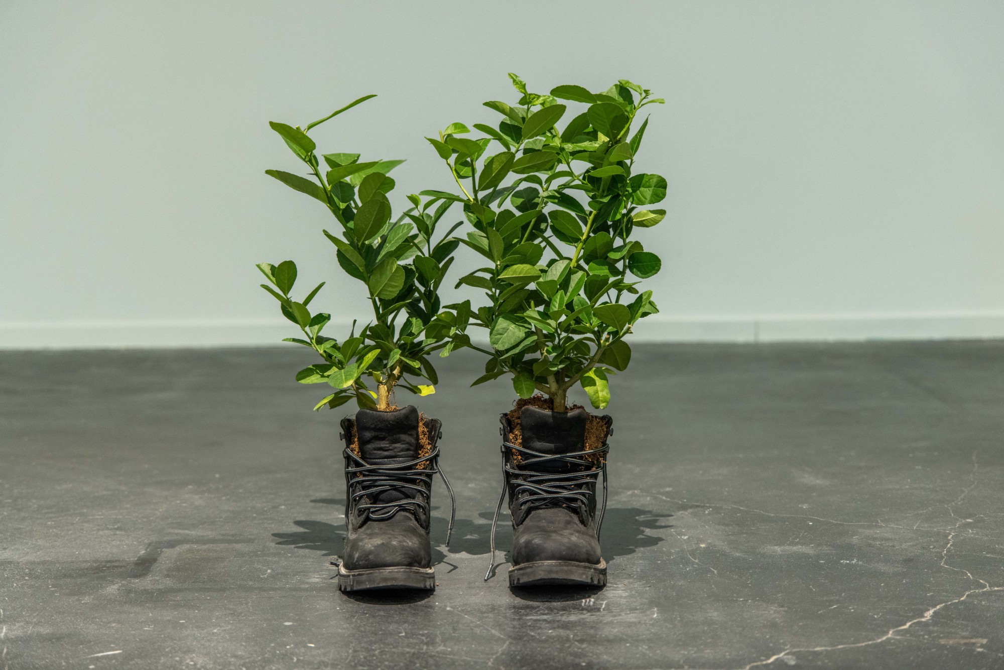 Works drawn from the artist’s own biography, identity as an artist, and ostensibly self-centered persona paradoxically open up into a multitude of identities and questions confronting the motifs of death and mortality, particularly the artist’s own: The kneeling figure with a paper bag over his head in No (2021) pronouncing the condition of destiny unknown; a grave moment in Untitled (1997) in the form of a pile of dirt and a hole in the ground the size of the artist’s body; the act of closure in Mother (2021), reprised here as a mural based on a photograph of the original 1999 performance. The nemesis of the artist’s alter ego, the elegant and powerful figure of the horse, shows up as an anti-heroic trophy in Untitled (2007), humiliated and trapped in the museum wall.