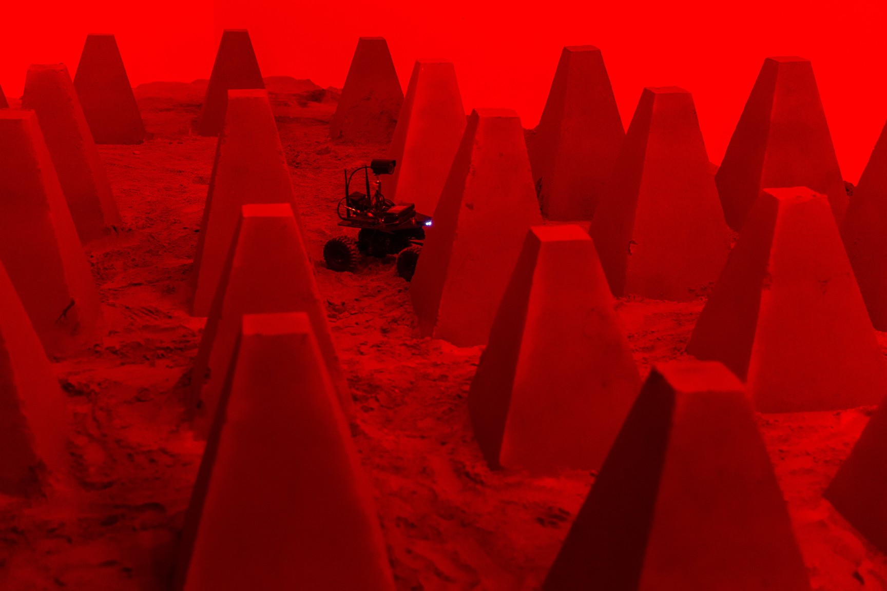 From 19 August to 23 October 2016, UCCA presents “New Directions: Nadim Abbas”, the artist’s first solo show in mainland China. Abbas transforms the Long Gallery into a single work, The Last Vehicle, dividing the space into two separate but interrelated segments: part alien landscape, part domestic living quarters. The “vehicle” in question refers to a remote-controlled rover, fitted with a prosthetic eye and wireless transmitter, which relays live footage of the foreign terrain and its solitary inhabitant back to the sedentary view of an armchair explorer. Here, the death of experience is re-enacted through the afterlife of images; multiple hallucinatory frames of reference played out in a perpetual cycle of ruin and regeneration.