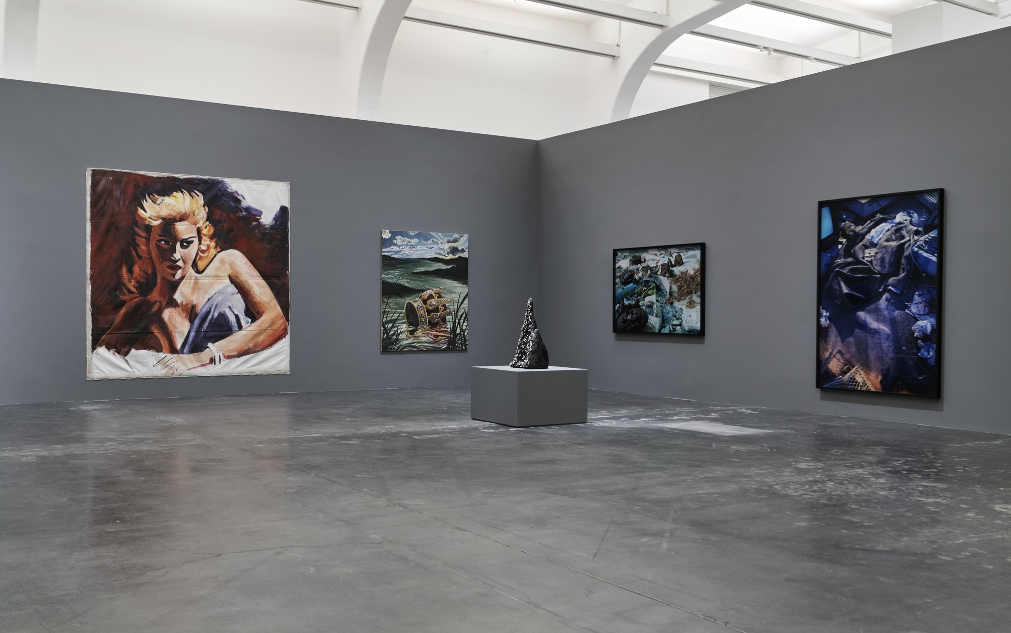 As suggested by the eclectic group of artists featured in “Myths and Archetypes”—including Robert Hawkins, Jenny Holzer, Thomas Lanigan-Schmidt, Nicolas Moufarrege, Cindy Sherman, Nam Jun Paik, Richard Prince, and Nancy Spero among them—artists repurposed and critiqued imagery from comics, pulp novels, and mythology to intervene in narratives of American exceptionalism and unsettle gender stereotypes. “Curtain and Stage” draws together works by Robert Kushner, Julian Schnabel, Laurie Simmons, and others that took a considered approach towards their backdrop, whether by referencing theater, dance, or the walls and subways on which graffiti first appeared. In “The Future that Never Happened,” Rammellzee and Ellsworth Ausby revel in the liberatory potential of Afrofuturism, while Kenny Scharf’s brightly colored Jetsons characters foreshadow the nostalgia-for-futures-past that would become widespread in the coming decades.