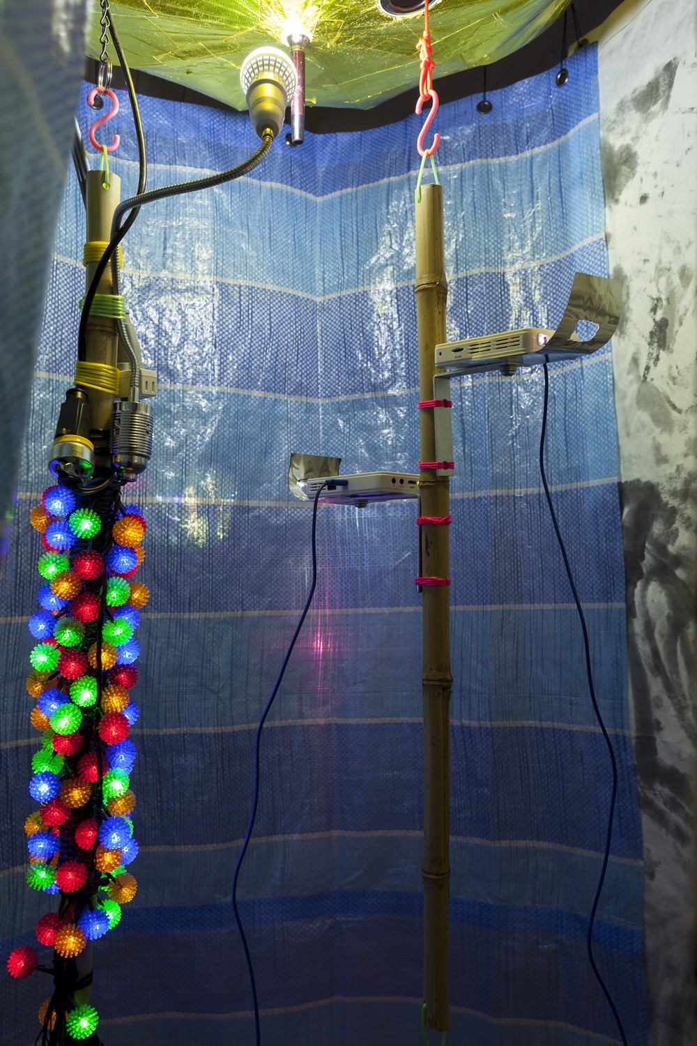 Mixed media, acrylic trays, polymer resin, aluminum structure, custom hardware