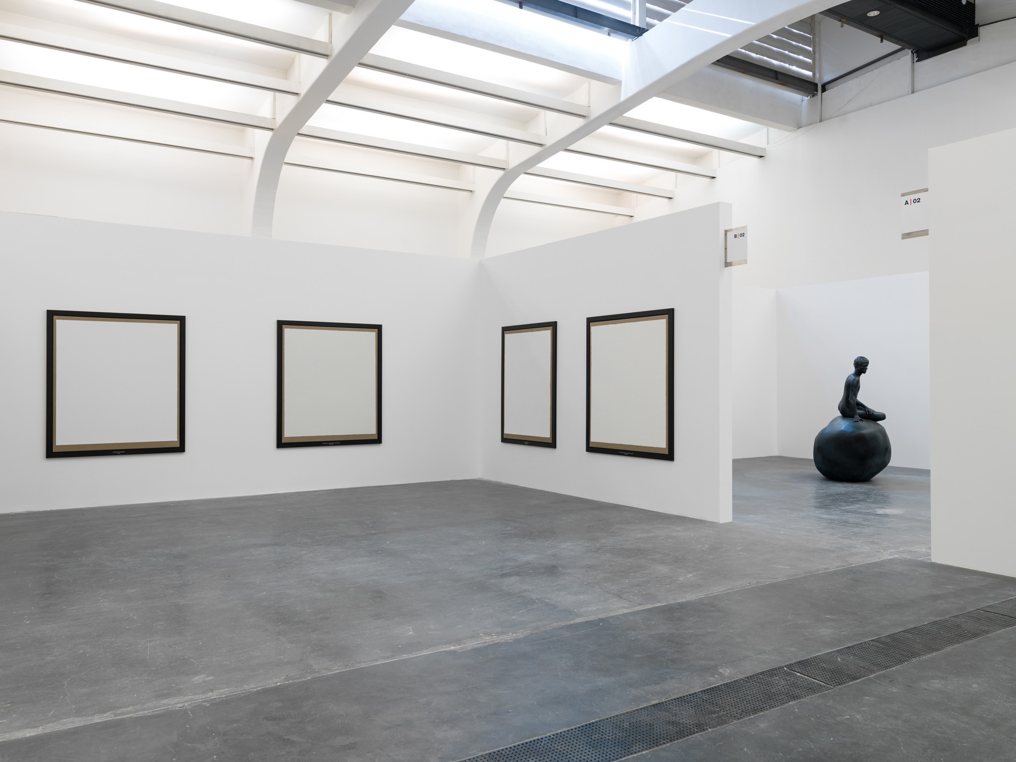 By staging an art fair within a museum, the artists question the social mechanisms of art institutions from within, as they did in previous exhibitions such as Zwischen anderen Ereignissen [Between Other Events], a performance first enacted in 2000 at the Galerie für Zeitgenössische Kunst, Leipzig, and now performed at UCCA in one of The Well Fair booths. In this durational performance, two house painters paint the already white walls of an exhibition space—in this case, the walls of the booth—over and over again with ever more layers of white paint. The repetitive routine of painting soon becomes contemplative, changing what is normally seen as a monotonous task into a ritual act. This early work is indicative of a frequent theme in Elmgreen & Dragset's artistic practice: the "white cube" as the standardized format for presenting art and the complexity of the color white. Playing with the notion of a typical, white-walled gallery, they have previously turned gallery spaces upside down, placed them underground, and suspended them from the ceiling; in The Well Fair the transformation of UCCA from museum to art fair becomes an artwork in itself, with the overall exhibition display functioning as a comprehensive art installation, a Gesamtkunstwerk.
