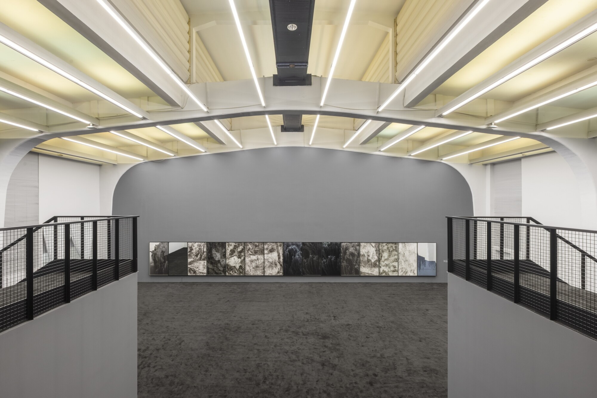 The exhibition also features a 15-panel installation comprising painting, media, and photography. Private Notes from a Land of Bliss (2025) is inspired by Elegant Gathering in the Western Garden, a handscroll by Southern Song painter Ma Yuan. Employing a highly personal visual language, Yang evokes the classical motif of the literati excursion, echoing the labyrinthine setting of Fragrant River situated at the other end of the gallery. The sequential logic of the fragmented images corresponds to the traditional mode of viewing a handscroll segment by segment, yet it also recalls the structure of film: discrete yet continuous shots. The work constitutes another chapter in Yang’s ongoing exploration of what he terms “painterly cinema.”
