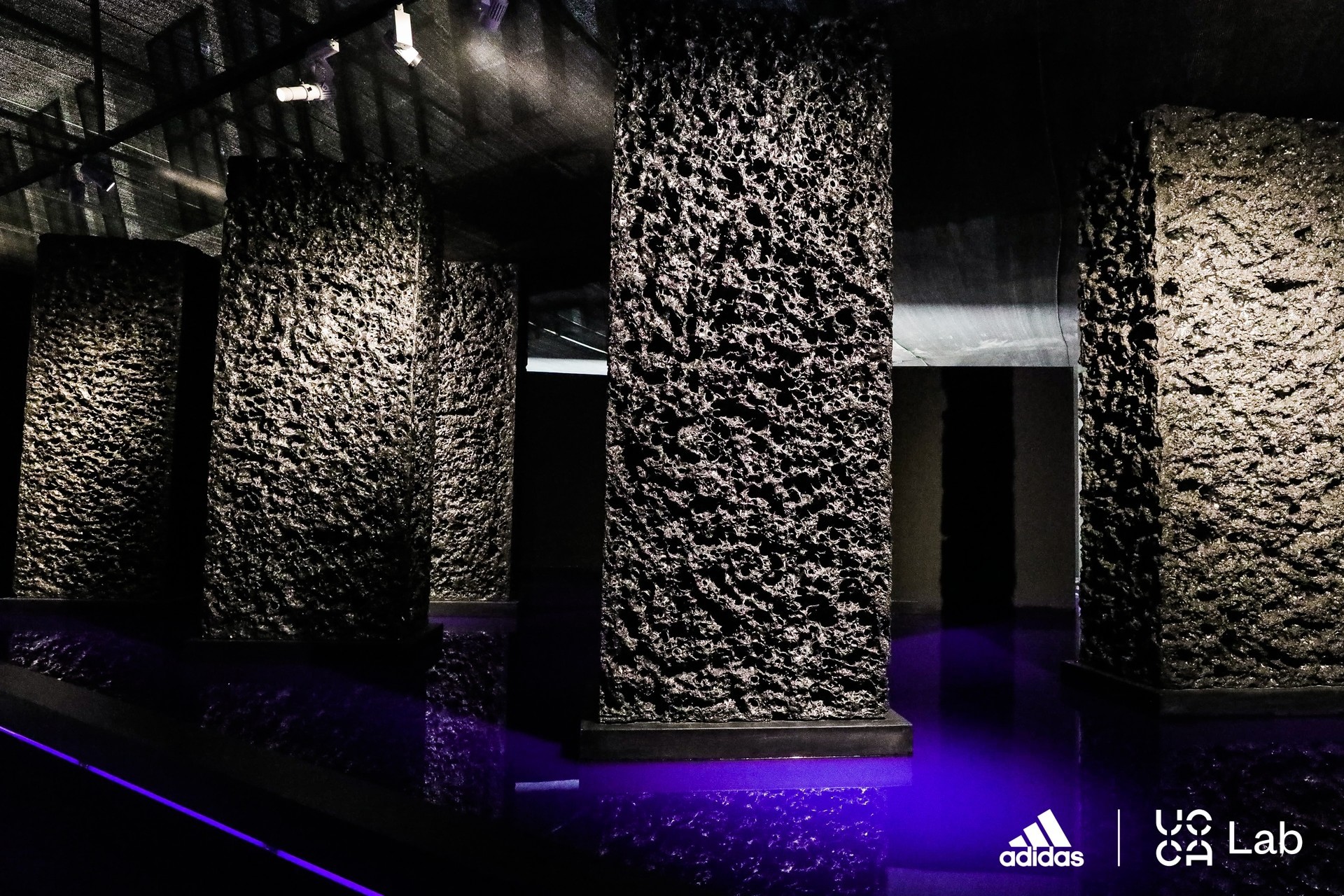 Installation, plastic bottles, dynamic particle rendering, video projection, color, sound