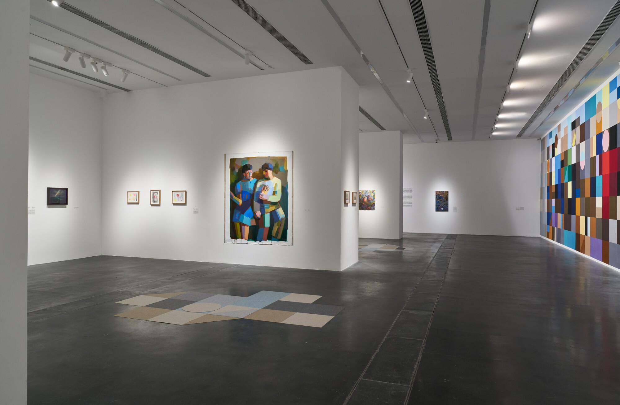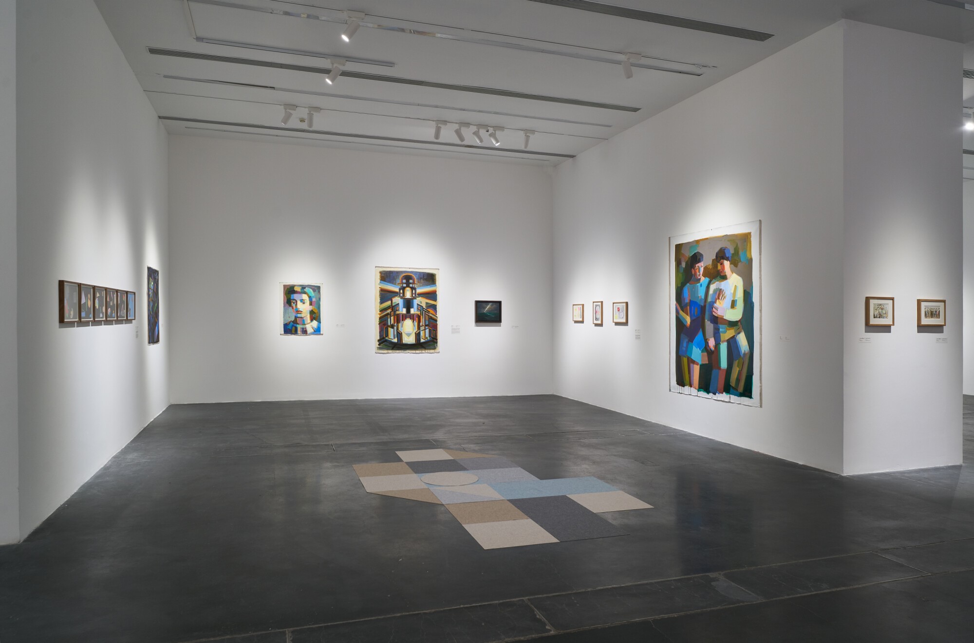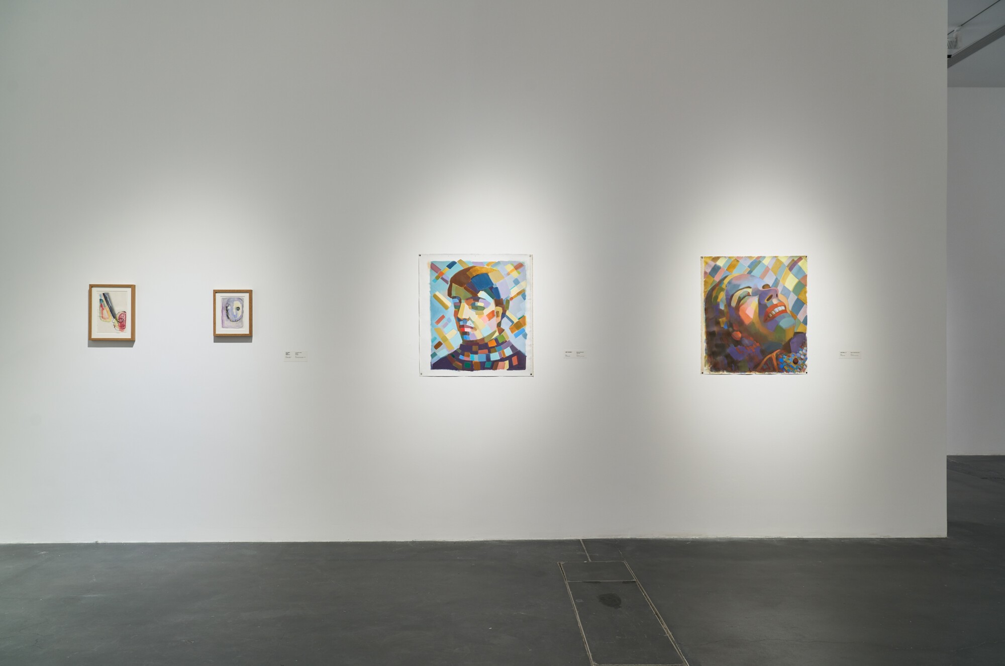 展览还呈现了“黑色背景的彩色梦”(2022)等纸本系列作品。这些作品综合运用水彩、油画棒、铅笔与拼贴等多种媒介,在艺术家最擅长的绘画领域之外,以细腻而富有表现力的方式探索了其他艺术形式的可能性。艺术家柔化了学院派严谨的几何结构,将其转化为犹如梦境般的构图,唤起一种情感上的亲密感,与包豪斯结构性视觉语言形成鲜明对比。