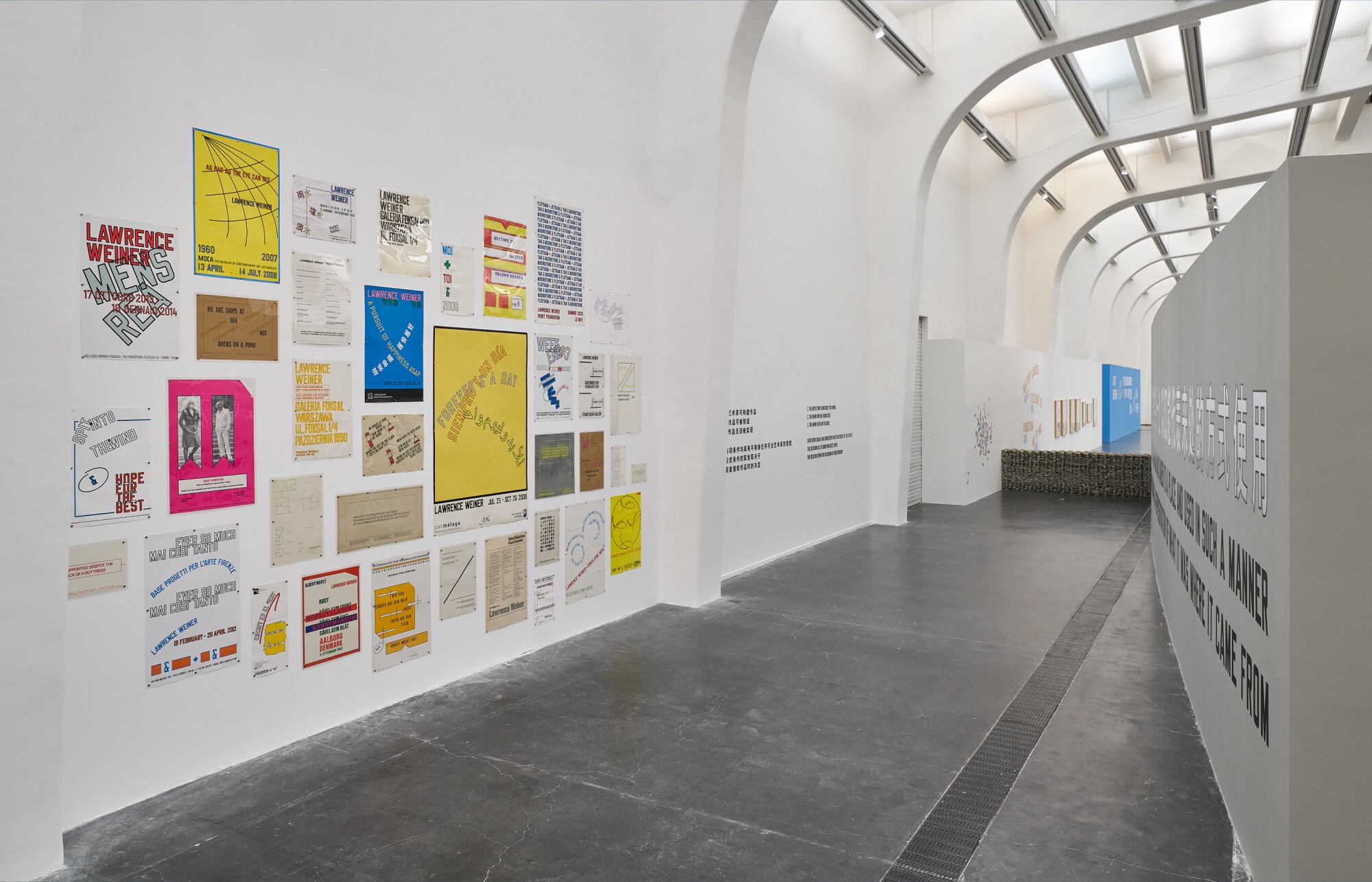 展览从劳伦斯·韦纳半个多世纪近1200件作品中,精选约50件语言作品,横跨艺术家完整的创作生涯。此次展出的绘画草图、海报和影像为观众——韦纳称之为其作品的“接受者”——理解艺术家的创作手法和理念提供了尽可能详尽的背景。每件作品于UCCA大展厅特定空间中得以展现其独特的表达,从而激发观众根据具体情境、关系、布置以及作品的展示方式,构建属于自己的解读与感悟。