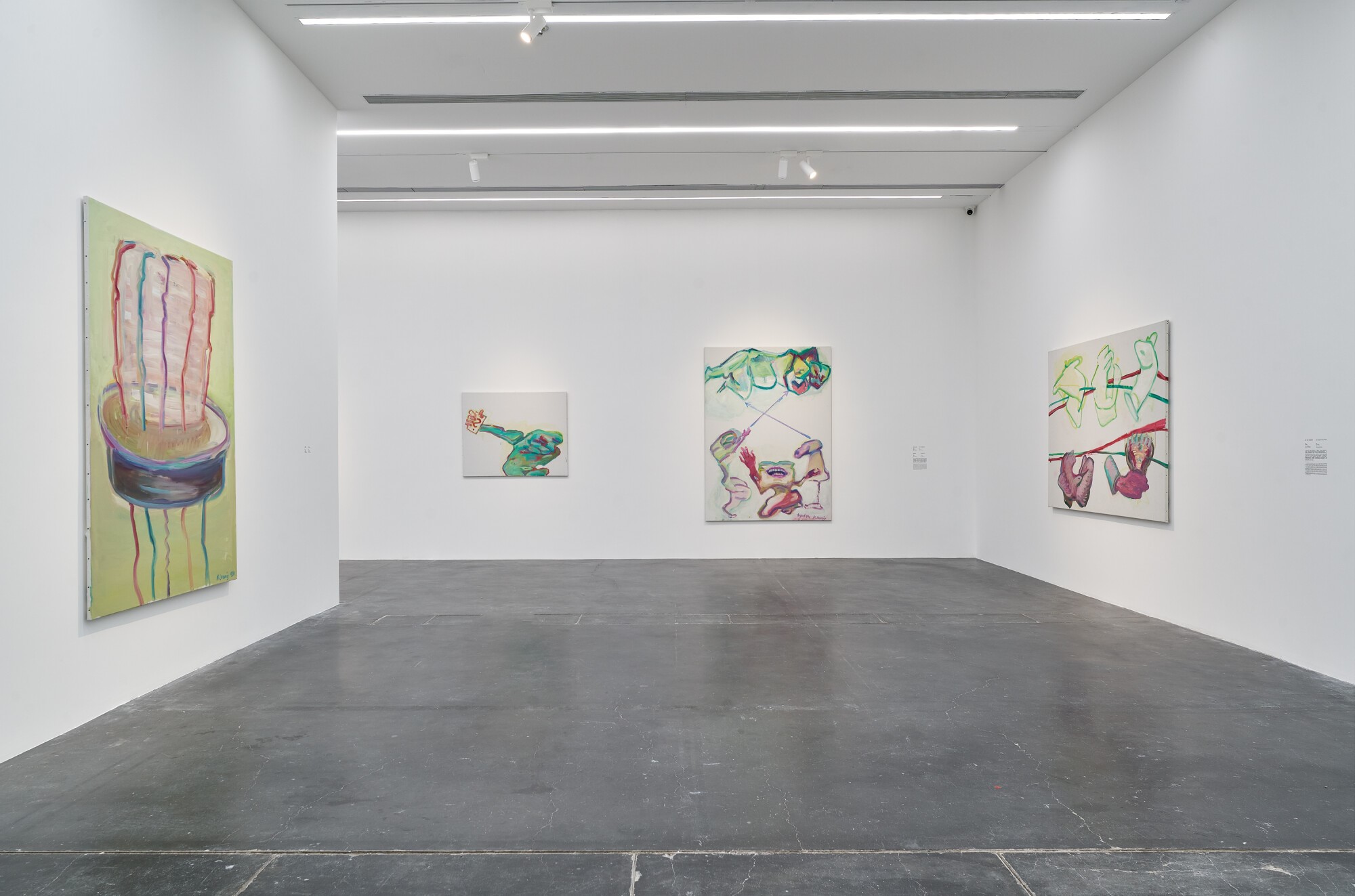“玛丽亚·拉斯尼格:火星来客”于UCCA的新展厅和中展厅呈现。新展厅内的作品根据主题分为四个板块:在第一个空间内,从拉斯尼格结合内心体验与外在表现的自我肖像,到艺术家对双人主题的描绘,如《床上的父母/妈妈和爸爸》(1955)中近乎抽象的色块与《悲剧二重唱/夸张二重唱》(1987)中富有表现力的扭曲身体,都体现了其创作实践中的双重性与二元性。而在下一空间内,无论是拉斯尼格对自我肖像与动物混合形态的探索,还是艺术家与动物的并置呈现,如《迎难而上》(2003),这些作品都重点展现了艺术家在绘画中对动物形象的运用。受法国哲学家雅克·德里达(Jacques Derrida)质疑人与动物边界思考的影响,拉斯尼格在借助动物形态表达自我不同方面的同时,也在为受环境恶化威胁的生物发声。新展厅内的其余两个板块呈现了拉斯尼格对“身体意识”的广泛研究。其中一个空间汇集了艺术家于20世纪90年代创作的纸上绘画作品,通过拉斯尼格对声音、气味等感官的探索映射,展现了艺术家对于自己头脑内空间的想象。这些素描有的为拉斯尼格将自己的思考拓展为大幅绘画提供了灵感,有些则因其引人入胜的直接性和亲切感而独自成画。此外,拉斯尼格还采用近乎经验主义,甚至准科学的方式创作了一系列针对身体研究的绘画作品。藉由描绘呈胚胎状的身体,创造有机与机械的混合体,借助内部器官的错位(如《有头脑的女士》,约1990-1999),拉斯尼格试图为自己的内心体验与可见的外部世界构建联结。
