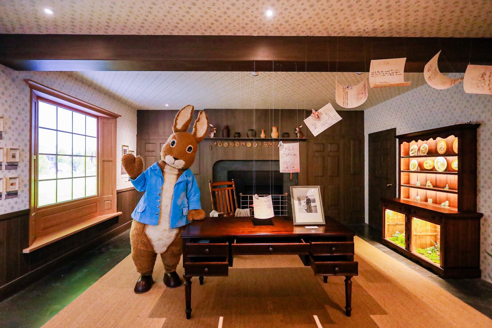 本次展览将分为五个章节:“故事开始的地方”“一场伟大的冒险”“一场激烈的战斗”“再讲一个故事”“心灵的共振”,每个章节都设有为此次展览特别收集的精美迷你雕塑,同时汇集诸多寓教于乐的互动装置。展览高度还原比得兔系列绘本中的经典场景和角色,观众在现场可与故事角色们共同探索自然田园清新美学,感受维多利亚英伦古典风情。第一章“故事开始的地方”还原了绘本作者波特小姐位于丘顶农场的会客厅,呈现其写信的经典场景——在飞旋而起的神奇信件中,观众可以探索比得兔系列绘本故事的精彩雏形、作者的童年故事和生活痕迹。第二章“一场伟大的冒险”融合了《比得兔的故事》和《小本杰明兔的故事》绘本内容,观众可化身比得兔溜进“菜园”,发挥自己的想象力与行动力,开启一场充满惊喜与挑战的冒险旅程;观众在此章节可参与“DIY花圃”“捉迷藏”“解救比得兔”“花盆工坊”等多项互动和手工体验项目,学习关于动植物知识的同时锻炼动手能力,亦可在阅读区一览比得兔系列绘本,深度体验与感受这一角色的顽皮与冒险精神。第三章“一场激烈的战斗”则还原了《托德先生的故事》中比得兔与其表兄本杰明兔一同拯救兔宝宝,与大坏蛋汤米·獾和托德先生斗智斗勇的故事场景。第四章“再讲一个故事”呈现比得兔系列故事中作者本人最喜欢的故事——《格洛斯特的裁缝》,一个关于一位老裁缝、一只小猫和几只热心肠的小老鼠的故事;所有小动物们的服饰都在此裁缝铺中展示,小朋友们可以自主选择喜爱的角色进行换装。最后一章“心灵的共振”则邀请观众走进丘顶农场,在现场拿起画笔绘制一封图文信,延续作者与亲人、朋友间爱意的流动,用亲切的话语、真诚的涂画寄出属于自己的比得兔故事。