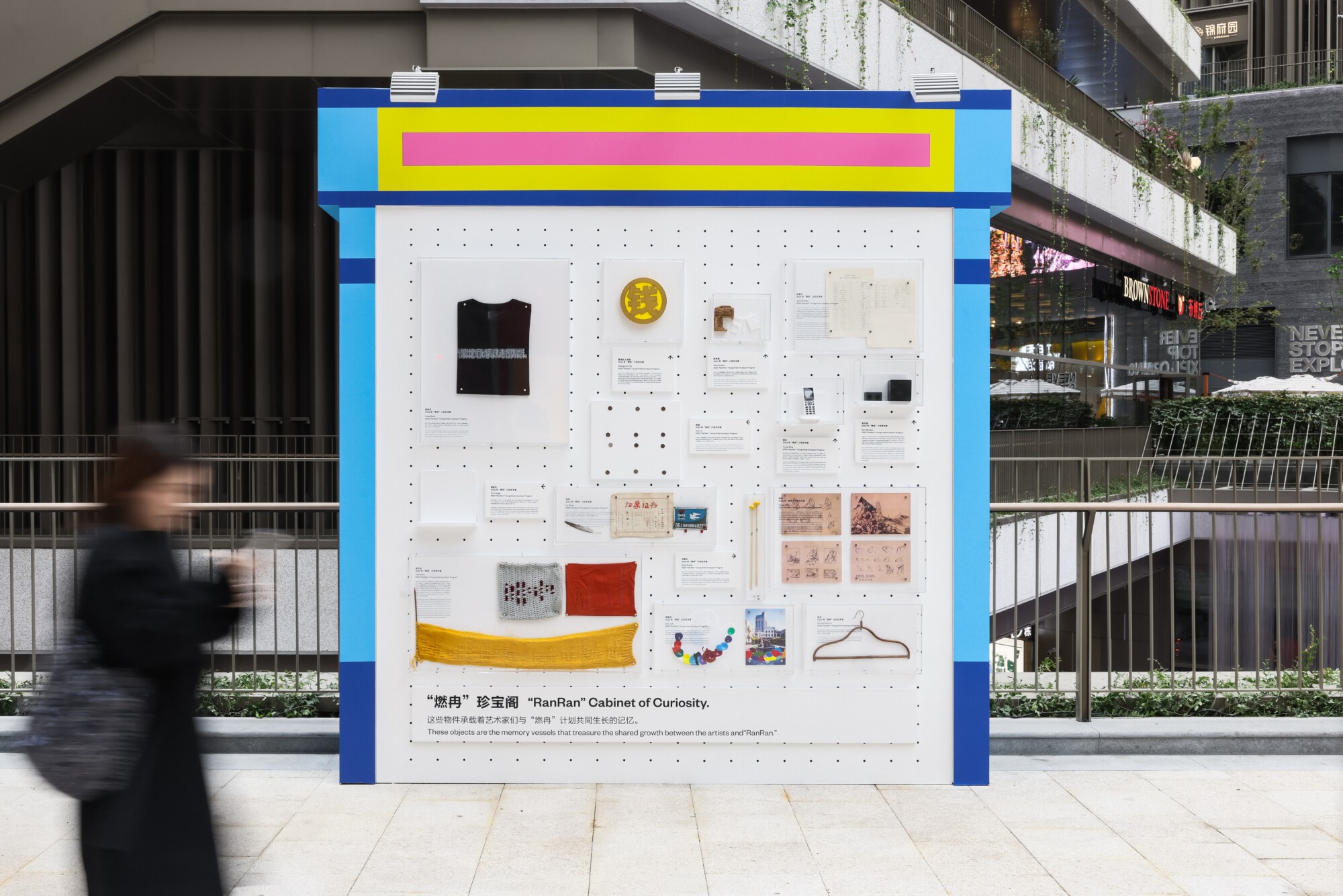 作为对“燃冉”计划过去三年历程的梳理,此次回顾展以“记忆重构”为线索,全景式呈现了这段艺术与城市共生的旅程,将景片装置、艺术家物件等展览内容融入新天地东台里的公共街区,构建出一条贯穿“燃冉”三年发展的情感脉络。在由SO CREATIVE STUDIO打造的空间与视觉设计中,“燃冉”的艺术家群像及其作品元素被转化为色彩鲜活的抽象人形立牌,错落分布于街巷之间,如老友般静候,邀请观众在漫步中完成一场跨越时光的温暖重逢。主展墙以抽象化的景片装置,再现了承载过去三年展览回忆的文化地标——新天地壹号;来自艺术家的个人纪念物,则通过与“燃冉”紧密链接的私密叙事勾勒出创作背后的故事。特别为本次展览编撰的报纸,集结丰富的记忆碎片,供来往行人取阅,为街区添加了一道似曾相识的风景。整个展区通过多元叙事的叠合,让观众在行走中与“燃冉”不期而遇——艺术重归生活现场,城市与艺术的对话,在真实的街巷中持续生长。