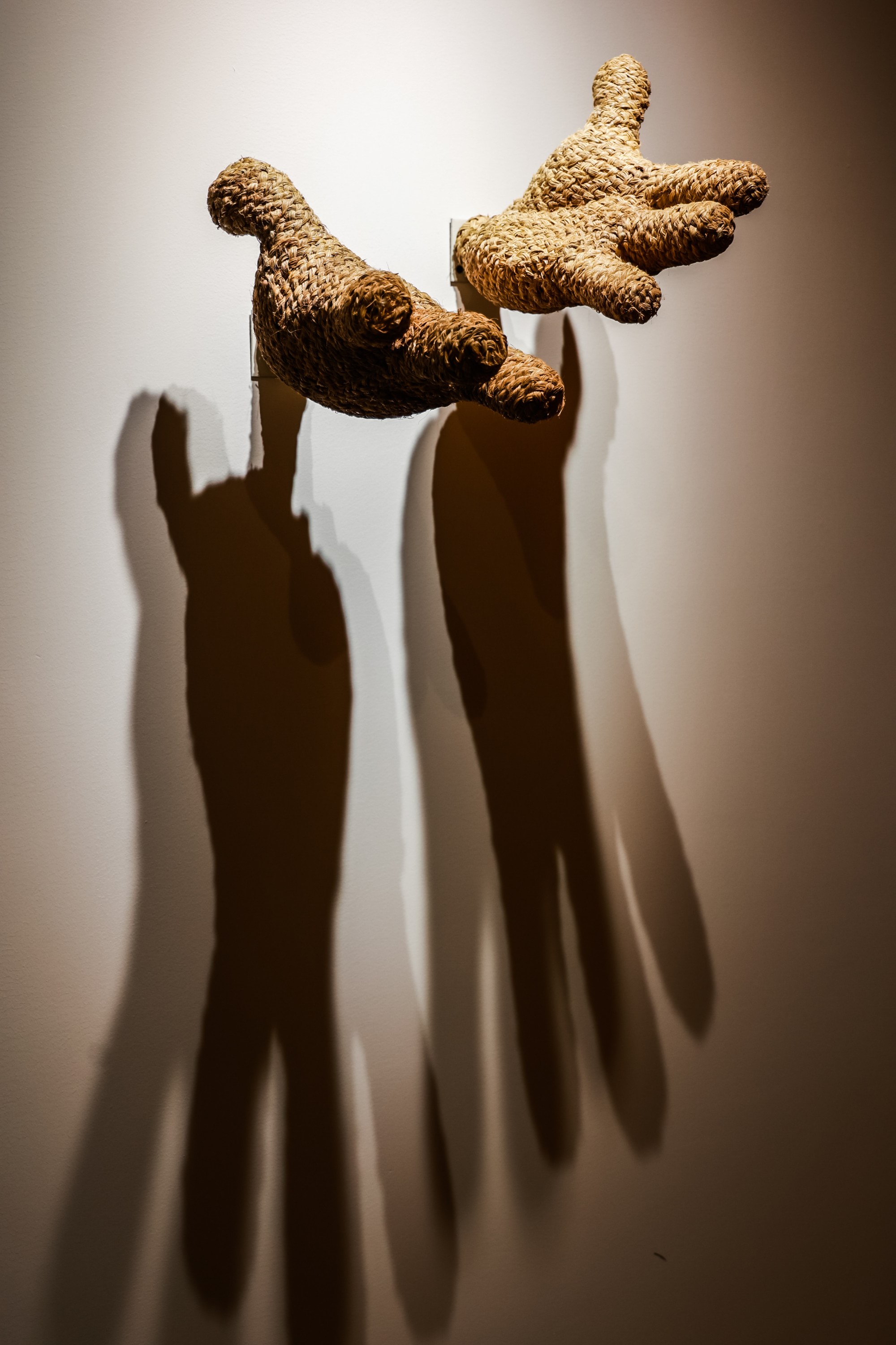 钢、拆开的米奇毛绒毛毯、棉花、羊毛、聚酯纤维细带、丝绒和填充物