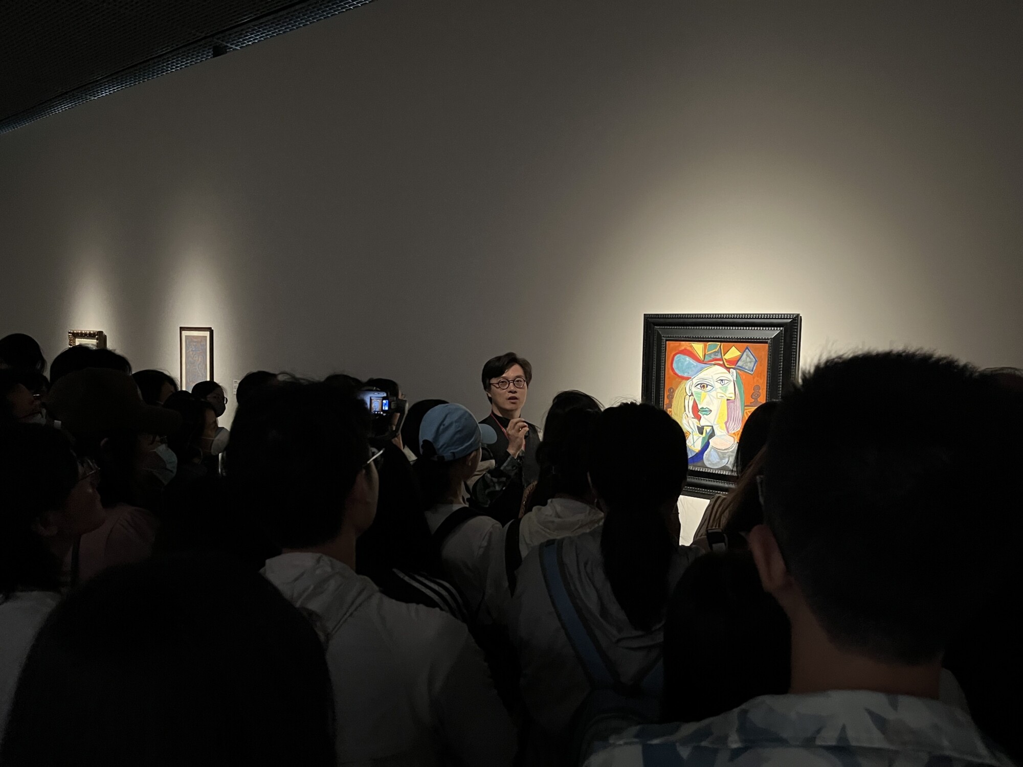 第六站开场的特邀导览,我们邀请了独立策展人、艺术脱口秀演员罗依尔来到展厅,以他独到的视角与幽默的语言为观众带来一场以“毕加索向外,马蒂斯向内”为主题的导览活动,试图借此引发大家思考:他们如何用画笔回应整个社会与个人的困境?他们的故事与作品在当下是否依然能丰盈我们的想象力、治愈我们的心灵?